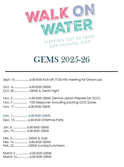 GEMS is a place where all 1st-7th grade girls are welcome to belong and be loved. GEMS evenings are packed with songs, games, crafts, lessons, projects, prayer and some special surprises. GEMS focuses on building relationships among girls, with leaders and with Jesus. Throughout the year our goal is to build relationships that help bring the girls into a living relationship with Jesus Christ.