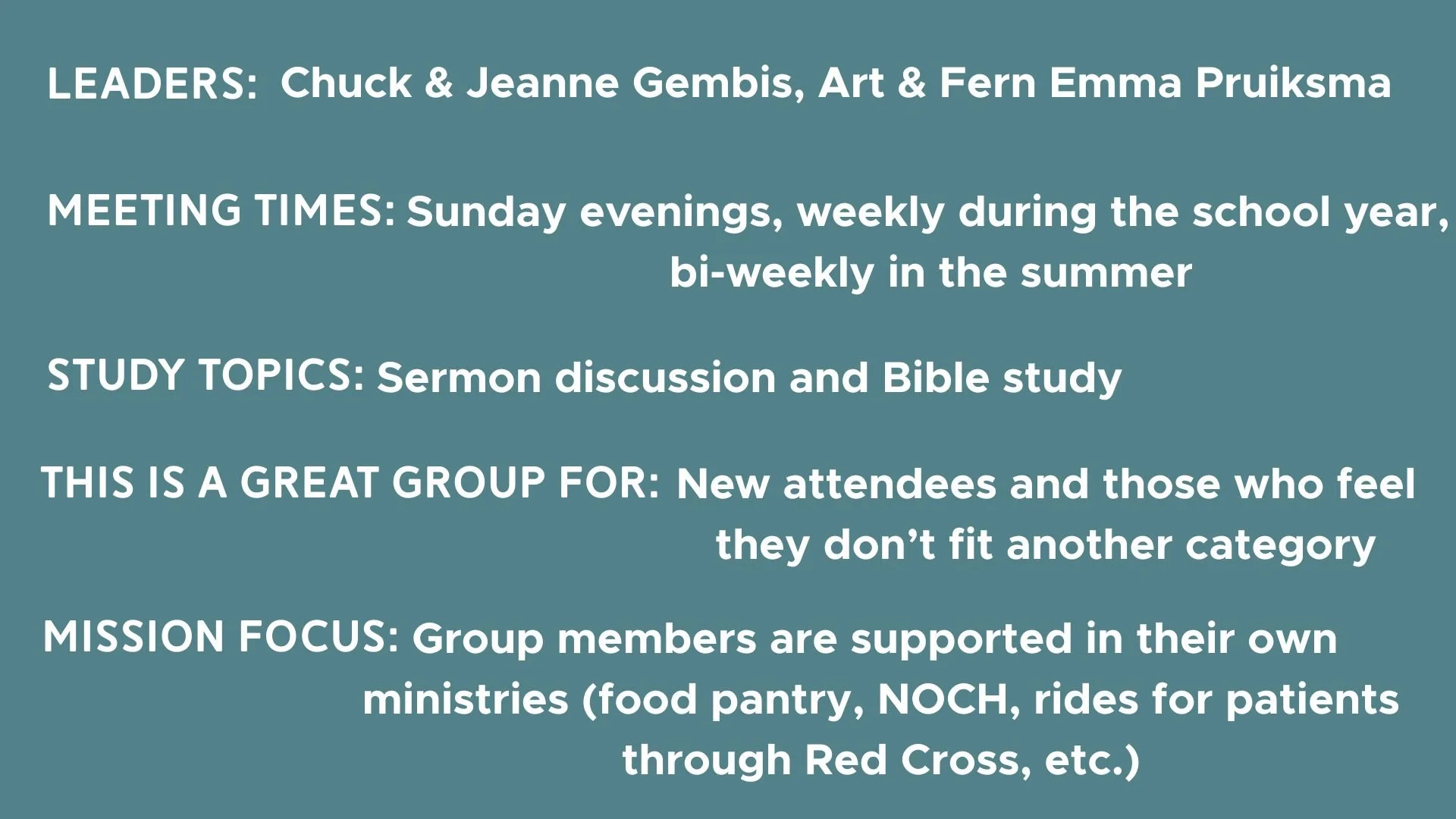 LifeGroups are mid-sized groups of people from our church family that gather twice a month to study, serve, and share life together. We have groups for all kinds of people at different places in life. If you’d like more information or help finding a LifeGroup, contact Pastor Nate (nate@ferrysburgchurch.com) or the church office (office@ferrysburgchurch.com).